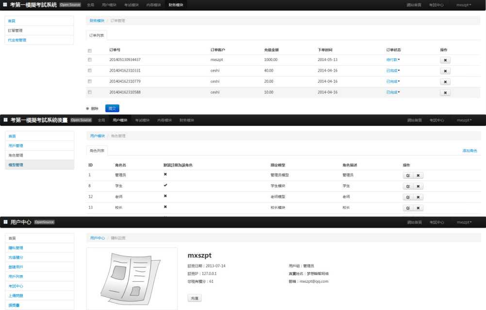 在線模擬考試,按客戶要求做成繁體版本,在默認基礎功能上,增加提問系統,頒獎臺等功能